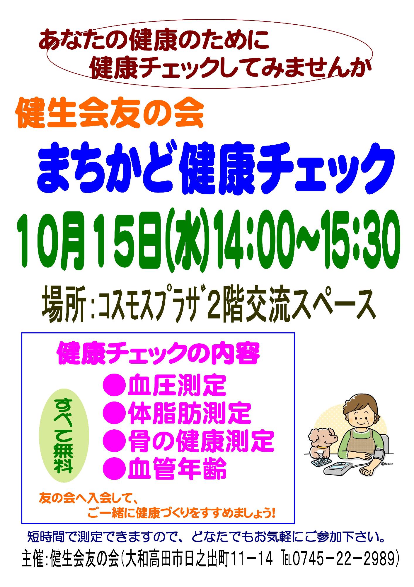 健生会友の会(健康チェック) Tweet 更新日:2025年09月27日 イベント情報 活動場所 2階交流スペース 開催日時 10月15日(水曜日)14:00~15:30 連絡先 0745-22-2989