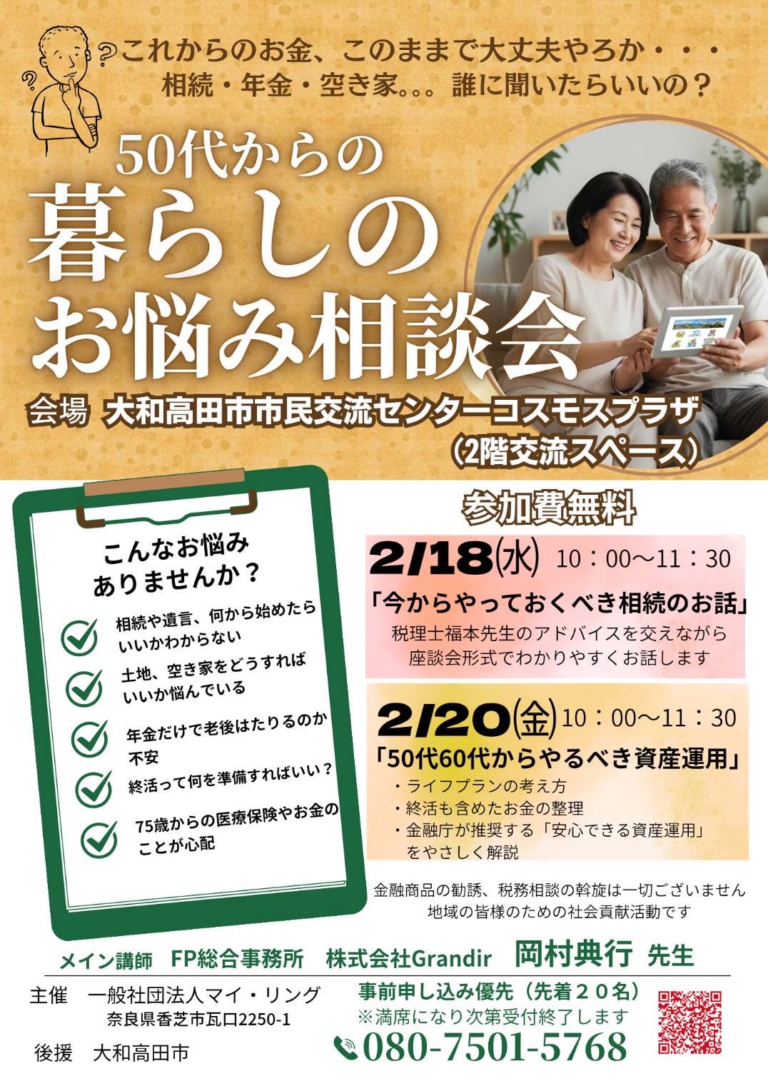 今からやっておくべき相続のお話(一般社団法人マイリング) Tweet 更新日:2026年01月23日 イベント情報 活動場所 2階交流スペース 開催日時 2月18日(水曜日)10:00~11:30 連絡先 080-7501-5768(金森)