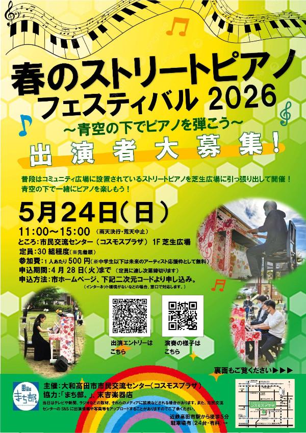 【春のストリートピアノフェスティバル2026】の出演者を大募集しています。