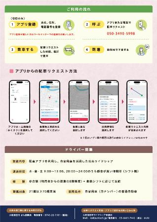 それに伴い、この実証実験に参加し、地域を支えていただけるライドシェアドライバーを随時募集しています。ご関心のある方は、下記の方法によりご応募ください。