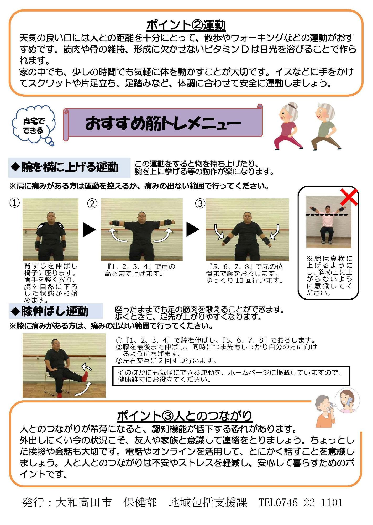 新型コロナウイルスに負けない!!長期戦に向けた体とこころを作りましょう(ポイント2、3)のチラシ 拡大画像 (JPEG: 540.9KB)