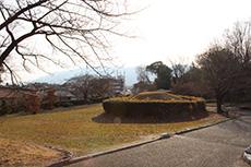 小高い山と一体となった公園。春には公園内と山全体に桜が咲き誇ります。